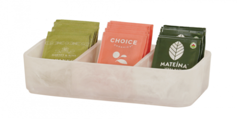 Tray, 9.5"W x 4.375"D x 2.125"H, rectangular, resin, white swirl marble