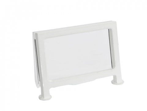 Card Holder, 3-1/2" x 2"H, clear acrylic with iron frame, white finish