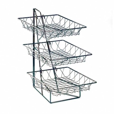 Display Rack, 12"W x 19"D x 20"H, 3-tier, (3) 12" square wire baskets, black powder coated wire