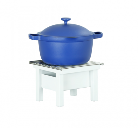 Juno Chafer Alternative, 10.25"W x 10"D x 7"H, white metal construction, includes wire grill and fuel cell rail with wind guard