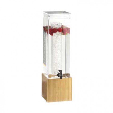 Beverage Dispenser, 3 gallon capacity, 8-1/4"W x 9-3/4"D x 25-3/4"H, ice chamber, drip tray, acrylic, bamboo base, BPA Free