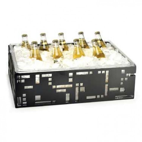 Squared Ice Housing, 12-1/2"W x 21"D x 6-1/2"H, clear polycarbonate pan, decorative geometric cutouts, black metal