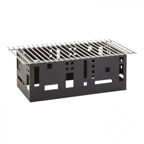 Squared Chafer Alternative, 22"W x 12"D x 7-1/2"H, rectangular, windguard, decorative geometric cutouts, black metal, BPA Free