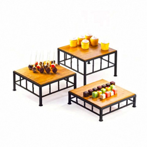 Riser, 12"W x 12"D x 7"H, bamboo top, iron frame, black