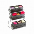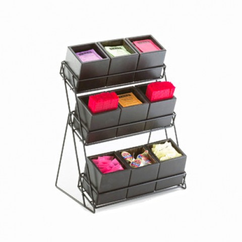 Midnight Bamboo Tiered Display, 13"W x 9-1/2"D x 17-1/2" H, 3-tier, (9) midnight bamboo bins, black wire frame
