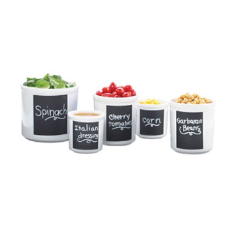 Crock, 32 oz. capacity, 5" dia. x 5-1/2"H, round, surface write-on capability, melamine, white (use with chalkboard pen)
