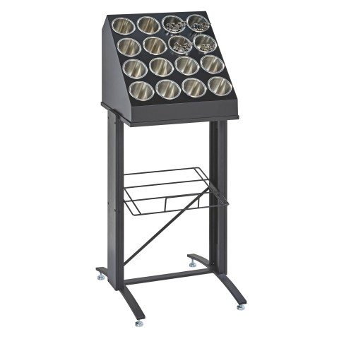 Bulk Utensil Holder Frame Only, 21-1/2"W x 24"D x 36"H, (16) compartment, base with wood overlay panels, adjustable feet, black, BPA Free