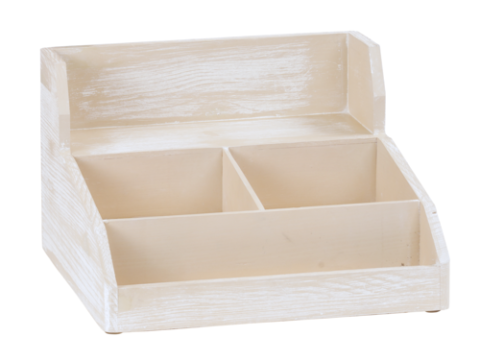 Condiment Station, 15" x 14-1/2"D x 9-1/4"H, (3) section, rustic pine (cup/lid organizer sold separately), option to display cups/lids with 3 of the 298-113's, Newport