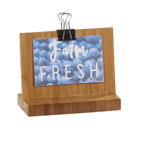 Clipboard Menu, 4"W x 2"D x 3-1/4"H OAL, rectangular, holds 3" X 2" card, flared base, double sided, clip included, bamboo, BPA Free