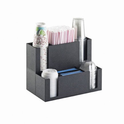 Classic Coffee Station Organizer, 14-1/2"W x 8-3/4"D x 10-3/4"H, (6) section, accommodates up to 4" dia. cup/lids, ABS plastic, black