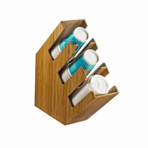 Lid/Cup Organizer, 4-1/2"W x 17"D x 16-1/4"H, (3) section, accommodates up to 4" dia. cups or lids, bamboo