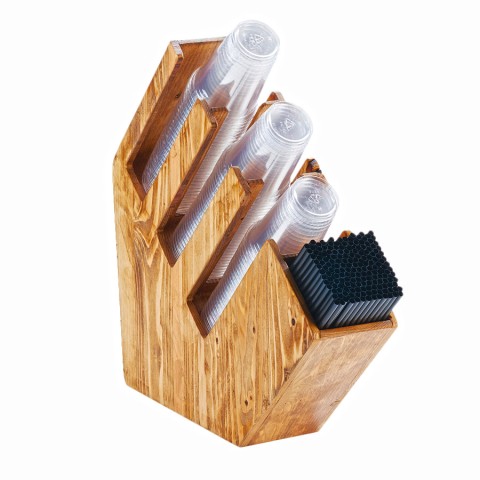 Madera Cup/Lid & Straw Holder, 5-1/2"W x 19-3/4"D x 20"H, (4) section, accommodates up to 3-3/4" dia. cups/lids, rustic pine