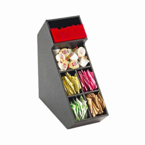 Classic Stir Stick & Condiment Display, 5-1/2"W x 13-1/4"D x 14-1/4"H, (6) section, removable divider, ABS-plastic, black