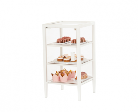 Juno Display Case, 14"W x 14"D x 26"H, rectangular, white powder-coated metal