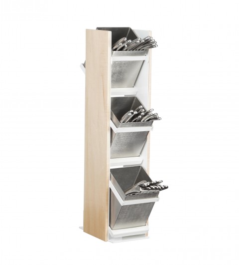 Blonde Flatware Holder, 4-1/2"W x 7"D x 21"H, 3-tier, includes (3) stainless steel flatware holders, maple wood