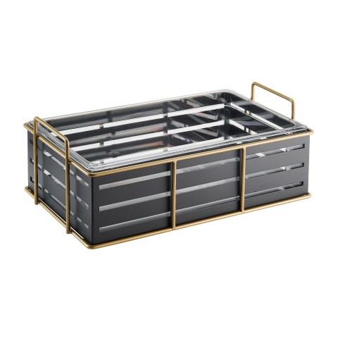 Empire Ice Housing, 22"W x 13-1/2"D x 6-3/4"H, rectangular, includes clear polycarbonate pan, gold wire frame, black