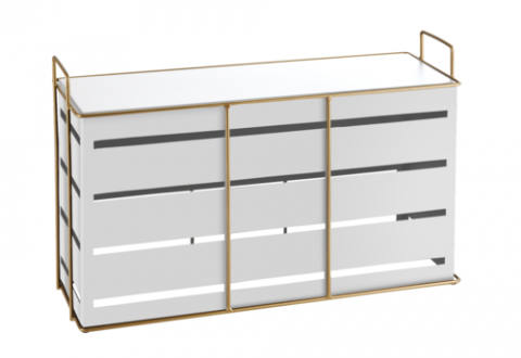 Riser, 20-1/2"W x 7"D x 13"H, rectangular, gold wire frame, sheet metal, white, Empire