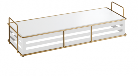 Riser, 20-1/2"W x 7"D x 5"H, rectangular, gold wire frame, sheet metal, white, Empire