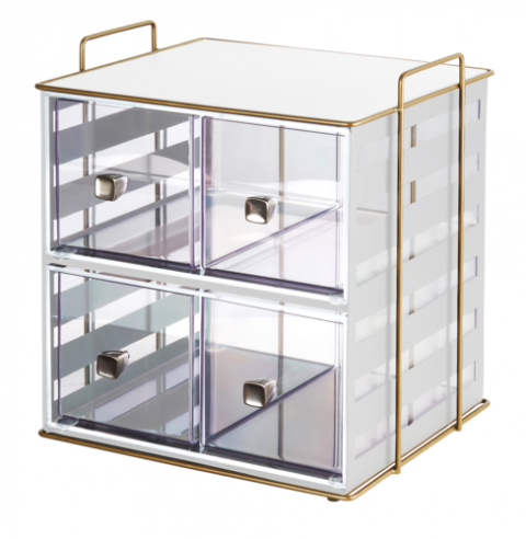Bread Display, 13"W x 11-1/4"D x 13-1/4"H, (4) section, (4) removable drawers with knobs, acrylic & steel, white, Empire