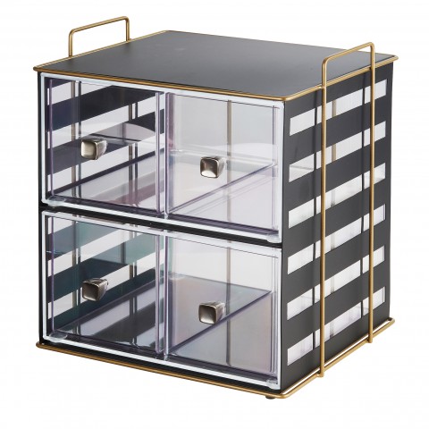 Empire Bread Display, 13"W x 11-1/4"D x 13-1/4"H, (4) section, (4) removable drawers with knobs, acrylic & steel, black
