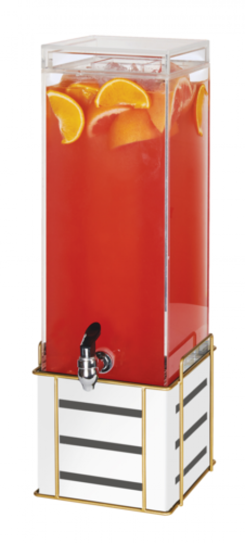 Beverage Dispenser, 3 gallon capacity, 8-1/2"W x 10"D x 24-3/4"H, with ice chamber, drip tray, spigot, acrylic body, steel base, white, BPA Free