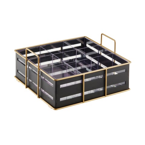 Empire Organizer, 11-3/4"W x 11-1/2"D x 6"H, square, (9) section, gold wire frame, black