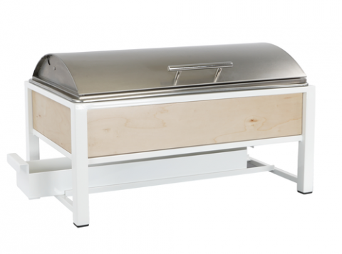 Blonde Chafer, 14-1/4" x 22-1/4" x 12-1/2"H, holds up to 5 cans of fuel at a time, lift top cover