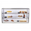Luxe Display Case, 42"W x 17"D x 23"H, 3-tier, straight, dual-service, sliding doors, removable shelves, white metal frame with stainless steel accent base, acrylic, clear