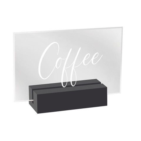 Sign, "Coffee", 3-1/2" x 1" x 2-1/2", crystal acrylic signage with bright white modern font, black wood base