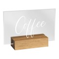 Madera Sign, "Coffee", 3-1/2" x 1" x 2-1/2", crystal acrylic signage with bright white modern font, rustic pine wood base