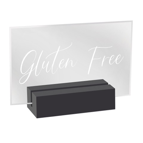 Sign, "Gluten Free", 3-1/2" x 1" x 2-1/2", crystal acrylic signage with bright white modern font, black wood base