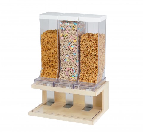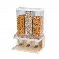 Blonde Cereal Dispenser, 17-1/2" x 12" x 24", (3) clear acrylic bins, countertop, push tab mechanism, crumb catcher, maple wood