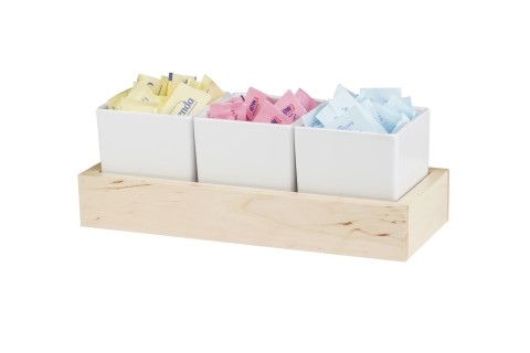 Blonde Jar Display, 5" x 12-3/4" x 4-1/2", (3) melamine jars, rectangular, maple wood base