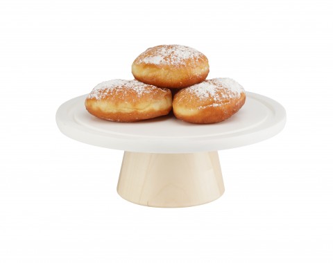 Blonde Cake Stand, 9" dia. x 3-1/2"H, soft white corian plate, maple wood base