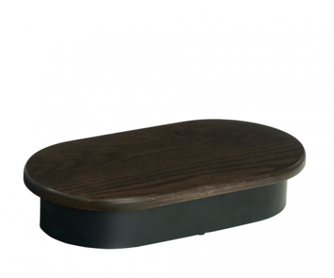 Heritage Riser, 18" x 10" x 3"H, oval, dark brown oak top and black metal base