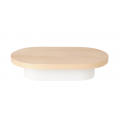 Blonde Riser, 18" x 10" x 3"H, oval, maple wood top and white metal base