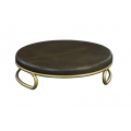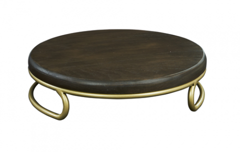 Heritage Riser, 12" x 12" x 3"H, round, matte gold wire base and dark stained oak top