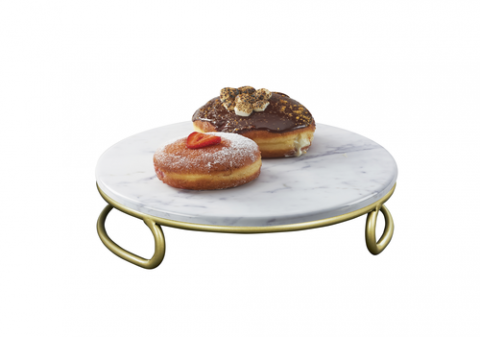 Heritage Riser, 12" x 12" x 3"H, round, matte gold wire base and marble melamine top