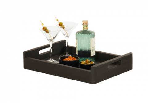 Brooklyn Room Service Tray, 17.25"W x 12.5"D x 3.25"H, rectangular, wood, cutout handles