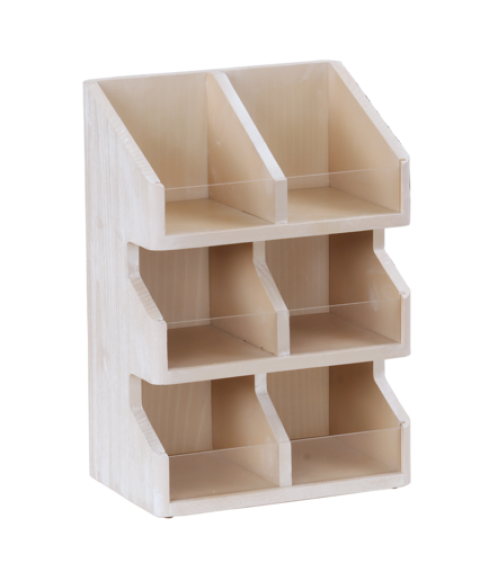 Condiment Display, 11"W x 7"D x 16"H, 6 section,white-washed pine wood, Newport