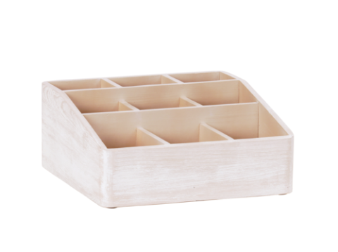 Condiment Display, 12"W x 12"D x 5-1/2"H, 9 section, white-washed pine wood, Newport