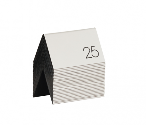 Engraved Number Tent Set (1-25), 5"W x 3-1/2"H, horizontal, silver/black (see color chart)
