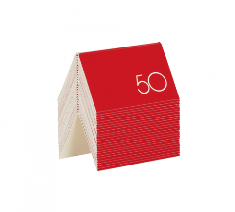 Engraved Number Tent Set (26-50), 5"W x 3-1/2"H, horizontal, red/white (see color chart)