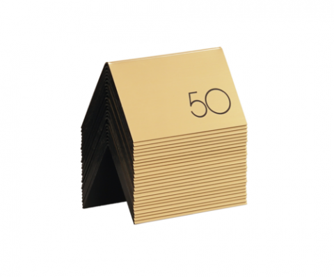 Engraved Number Tent Set (26-50), 5"W x 3-1/2"H, horizontal, gold/black (see color chart)