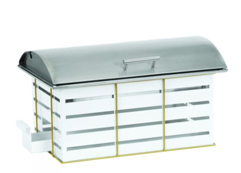 Chafer, 7"W x 7-1/4"D x 18-1/2"H, holds up to 5 cans of fuel at a time, includes stainless steel lift top cover, white, Empire
