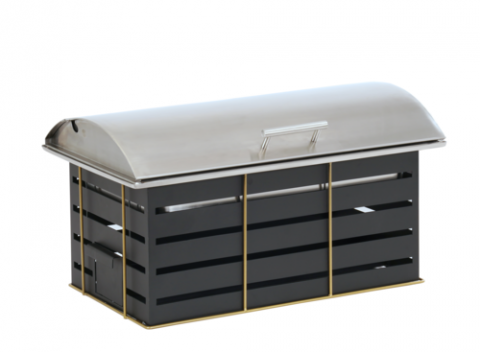 Chafer, 7"W x 7-1/4"D x 18-1/2"H, holds up to 5 cans of fuel at a time, includes stainless steel lift top cover, black, Empire