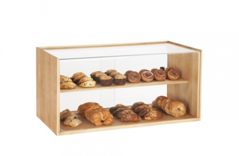 Bakery Display Case, 36"W x 20"D x 18"H, 2-tiers, acrylic front, natural oak frame (ships by truck only)
