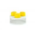 Juno Riser, 7.5"W x 3"H, round, white metal construction, includes water pan and liner
