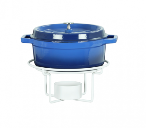 Juno Chafer Alternative, 12"dia x 7"H, white metal construction, fits a variety of pots or pans