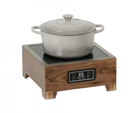 Induction Chafer Alternative, 22"W x 14"D x 13"H, 1800 W, 120 volts, 15 Amps, walnut